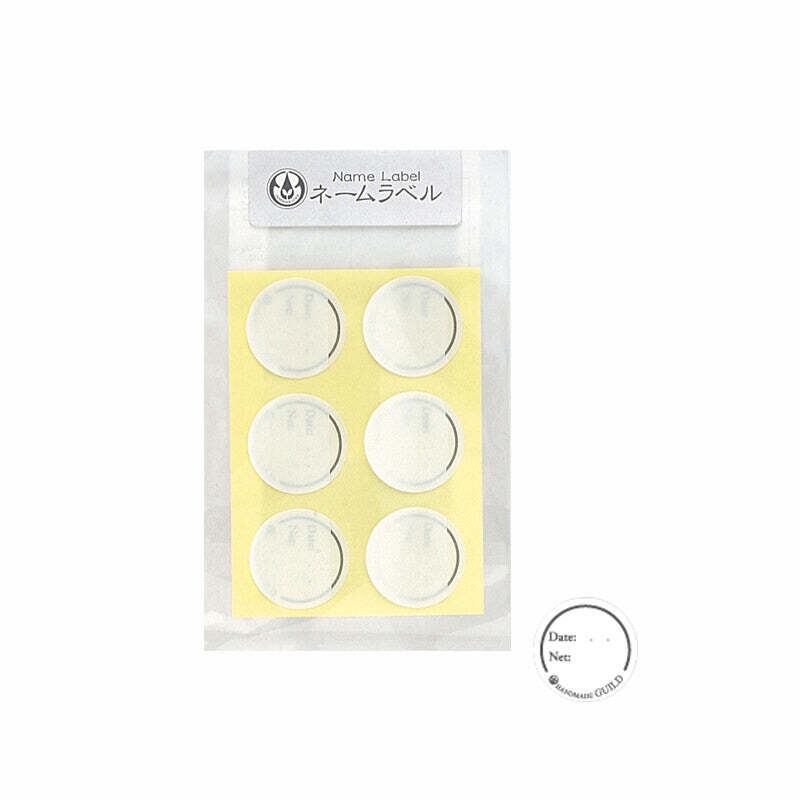 化粧品を作成した日付などを書き込むことができる、透明保護フィルム付きのネームラベル。
